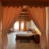 La chambre orange est notre chambre familiale. Elle peut accueillir de deux à cinq personnes. Deux lits d’une personne, nichés dans une alcôve, permettent de séparer les zones de sommeil des parents et des enfants.