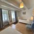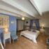 La chambre bleue est la chambre la plus fraiche en été. L’épaisseur des murs en pierre et l’ombre des arbres se conjuguent pour conserver une température agréable. Elle est aménagée pour deux ou trois personnes et propose un lit de 160 cm, un lit de 90 cm, une salle d’eau avec wc privative.Petite télévision.
